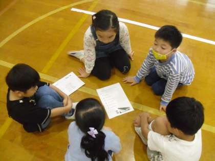 1校時には1・2年生の仲を深めるために、「なかよしるんるん大作戦」をしました。
