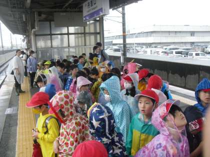 雨の中、かっぱを着たり、傘をさしたりして、一生懸命駅まで歩くことができました。
