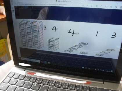 算数科「一万をこえる数」の学習では、1万を超える数について学習をしていきます。今回は、東京マラソンの参加者の様子を見ました。「1000のまとまりが10こで一万」という既習事項を用いて、一万が3つで三万ということに気が付くことができました。