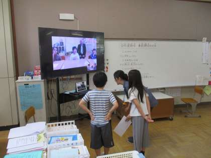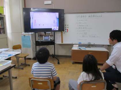後半では、運動会当日の競技の説明がありました。朱三校は団体競技の担当なので、当日どのようにするのか、子どもたちにも手伝ってもらって説明をしました。「緊張するなぁ。」と言いながらも、みんなに伝わるようにはっきりとした声で説明を手伝ってくれました。きっと支部のみんなにもしっかりと伝わったはずです。また運動会当日、今度は画面越しではなく、直接会えるのが今からとても楽しみですね。