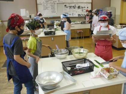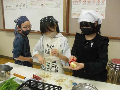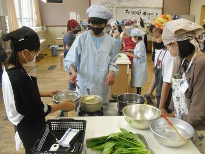 また、調理用具の扱い方に気をつけながら、野菜を切ったり、茹でたりする姿が見られました。