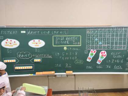 授業が終わって、給食の準備をしていたので、どのような授業だったのかは分かりませんでしたが、頑張って授業をしたことがよく分かる黒板の形跡が見られました。