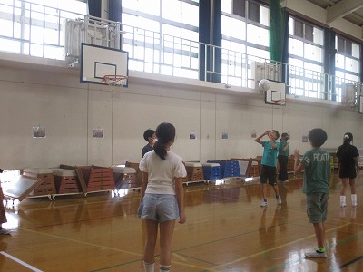 今日は、全校で取り組んでいるスポーツチャレンジ大会の種目「円陣バレー」に取り組みました。グループに分かれて、ふわふわのバレーボールを使って、パスをまわしていきます。子どもたちは、声を掛け合いながら一生懸命取り組んでいました。次の練習では、記録を更新できるように頑張ります!