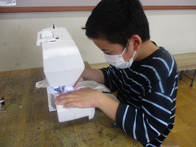 5年生で学習した、ミシンの扱いや布を使った作品作りの経験を生かして自分たちで計画を立てました。また、教科書や説明書を参考にして、どの順番でどの部分を縫えばよいのか自分たちで考えながら縫いました。