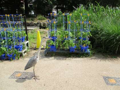 アオサギが学校訪問に来てくれました。
