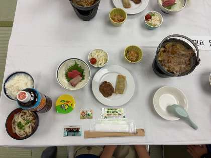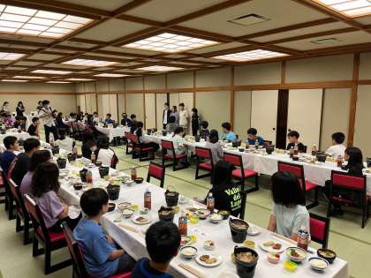 お待ちかねの夕食タイム。ご飯とうどんはおかわり自由です!