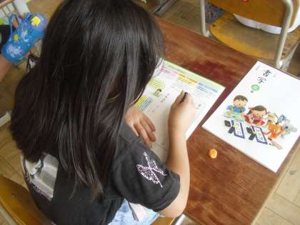 “申し上げます”や“せい夏”という言葉も子どもにとっては聞きなれないものですが、日ごろの様子や絵を交えながら丁寧に書くことができました。