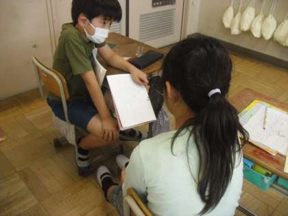 「これ、それ、あれ、どれ」などいつも意識せず使っているこそあど言葉について考えました。「これ取って」と「あれ取って」では人と物との距離が違うことに気づいたり、話し手と近いか相手に近いかで言葉が変わってくることに気づいたりしていました。