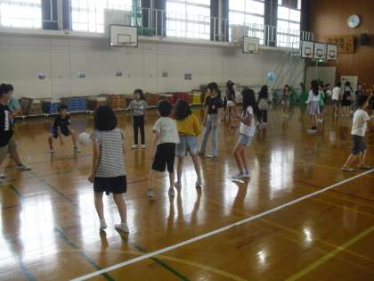 20日より、朱三スポチャレ強化週間が始まりました。3年生は、20日に割り当てがあったので、円陣バレーパスに取り組みました。