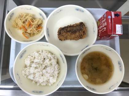 今日の給食は、和(なごみ)献立でした。和食を味わう日です。普段は牛乳がつきませんが、6月から9月の夏場は、水分補給のために牛乳がつきます。