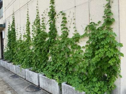 ビオトープの草引きの草を処分しに行った際に、京果さんにお世話になって4年生が植えたゴーヤを見ると、いくつも大きな実がなっていました!