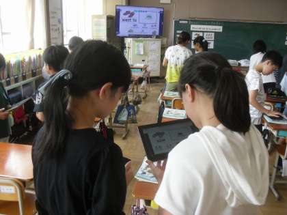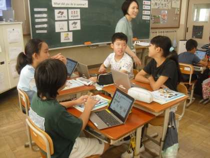 外国語の学習では、Where did you do in summer? の表現を使い、夏にどこに行き何をしたかを交流しました。