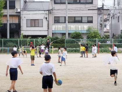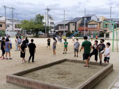 校長先生が運動場に出ると、5年生の子達が