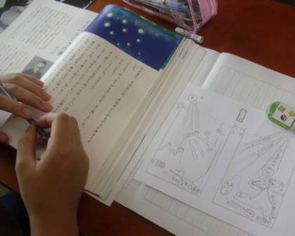 国語科で「やまなし」のお話の学習をしています。