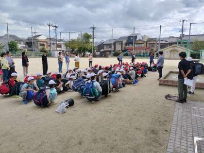 出発式の様子を見ていると、わくわく嬉しそうな表情や、少しドキドキの不安な表情など様々な気持ちで出発式を行っている子どもたちの様子が見られました。