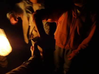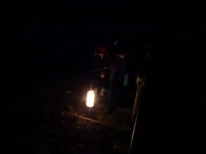 夜の自然の様子を感じながら,ろうそくランタンで道を照らしながら歩きました。
