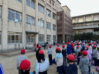 3日間の花背山の家での宿泊学習を終え、無事帰校し、解散式を行いました。