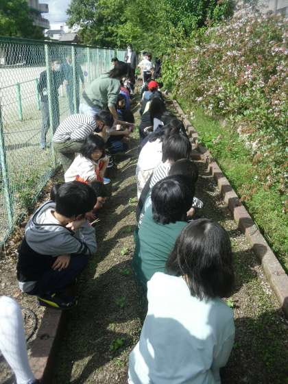 今日は、京果とタキイ種苗の職員の方に来校していただき、大根の間引きの仕方を教えていただきました。大根がしっかり育つためにどの部分を間引くのか、間引きの仕方を教えていただき、みんなで間引きを行いました。その後、追肥を行いこれからの大根の育て方について学びました。