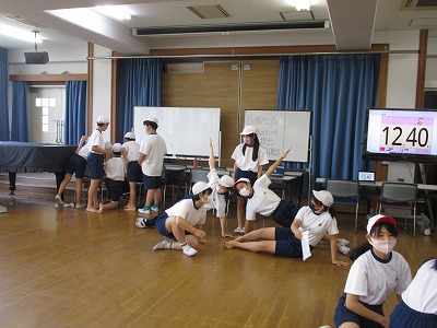 今日は、体育科の学習でリズムダンスで行う動きの確認をしました。