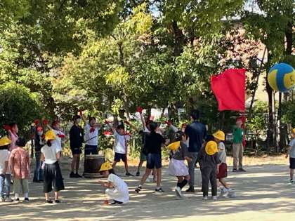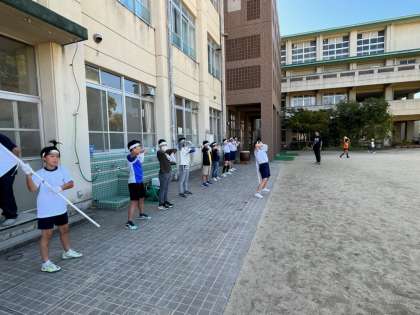 昼休みに、元気な声が聞こえると思い、運動場を見たら、応援団の練習が始まっていました。だんだん運動会の雰囲気が校内に出てきています!
