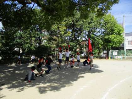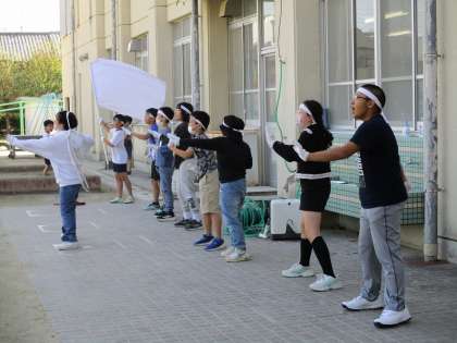 6年の団長を中心に、赤白ともそれぞれ元気のいい声を張り上げ応援の練習に取り組んでいました。