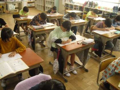 今回の書写の学習では、硬筆の学習をしました。久しぶりの硬筆の学習でしたが、見本の字をよく見て、鉛筆で丁寧に書くことができました。