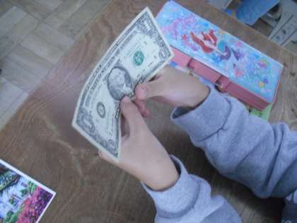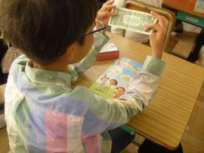 また、アメリカの紙幣を実際にさわらせていただきました。初めて触る子も多く、嬉しそうにしていました。