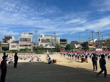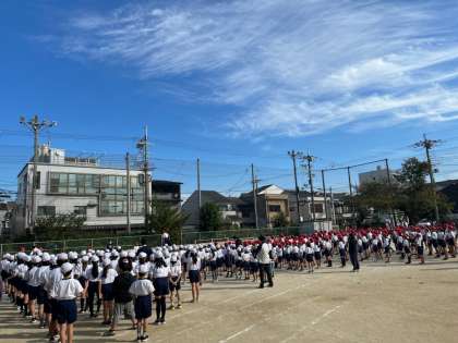 本日は、素晴らしい秋晴れの下、全校練習で開閉会式と応援合戦の練習をしました。全校児童が一堂に集まり、運動会に向かって一つになっている姿、とてもいい光景だなあ、と感慨深く思っていました。