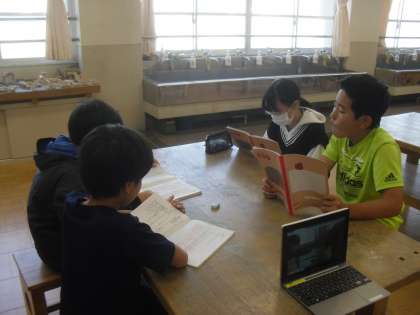 国語科の学習で、みんなが楽しく過ごせるために、どのような縦割り活動の遊びをするのかを話し合っています。進行計画にそって、司会者を中心に話し合い活動を進めました。