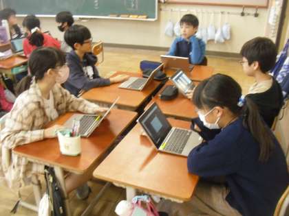国語では、互いの立場を明確にして話し合う学習を行いました。これまでに子どもたちは学校生活の中から課題を見つける活動を行ってきました。そこで出た課題を各班のリーダーたちが相談し、話し合いの議題を決めました。