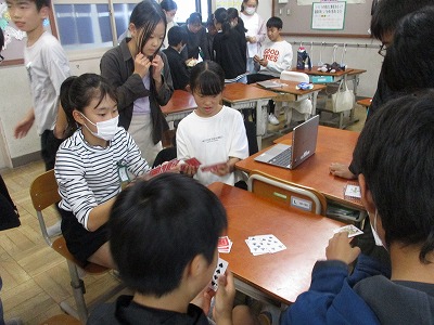 そこで、各学級に用意しているトランプとことわざかるたを使って遊びました。