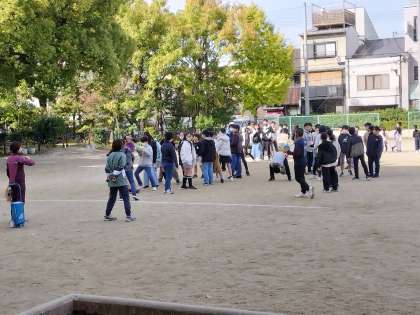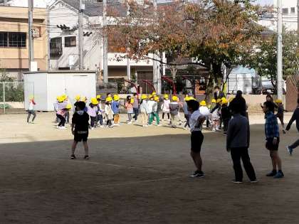 運動場の西側を見ると、6年生がスポチャレの取組のボール送りの練習を行っていました。