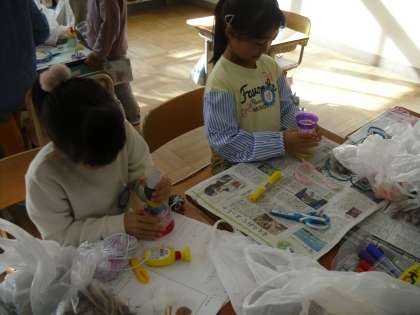 設計図を基に友だちと話しながらおもちゃを作っていました。