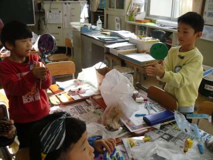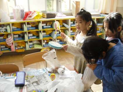 秋見つけで見つけて取ってきたもので、おもちゃ作りをしました。