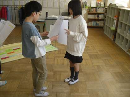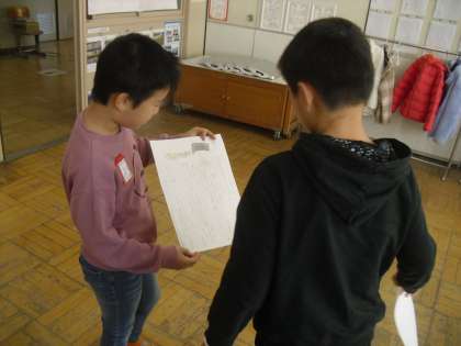 国語科「食べ物のひみつ教えます」の学習では、これまで学習してきたことを使って食べ物の返信の紹介文を書きました。今回はそれを交流しました。牛乳やとうもろこし、麦などたくさんのものがあったので、自分が調べた以外のものを知ろうと、積極的に交流する姿が素敵でした!