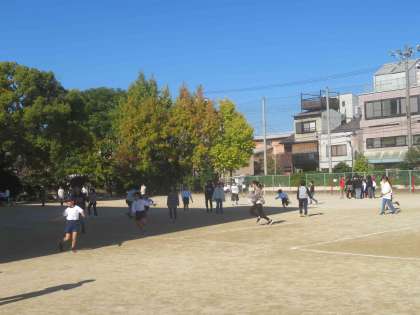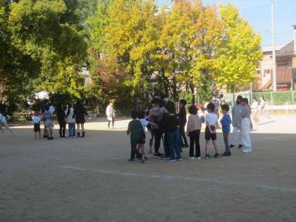だるまさんがころんだ、こおりおになど前回考えた遊びで遊びました。子どもたちは楽しそうに遊んでいました。たてわり遊びの後には、たてわりごとに振返りをしました。