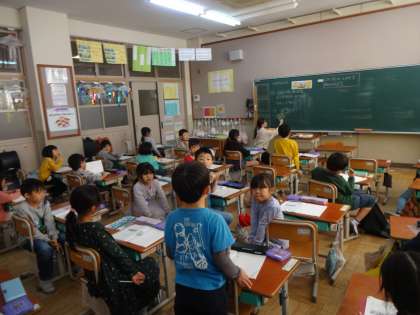 4時間目の1年2組でも、算数科「ひきざん(2)」の学習をしていました。
