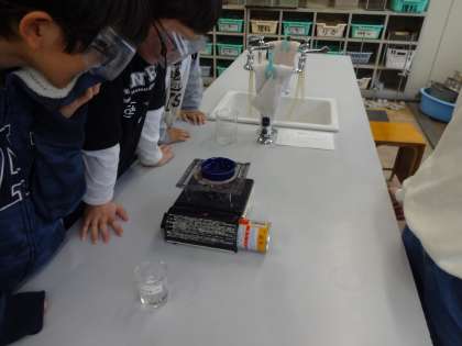 水溶液から、溶けている物質を取り出す方法について考え、実験をしていました。