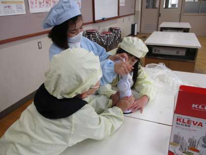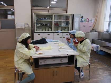 「畑で育てた大根を朱三校の教職員にも食べてもらいたい!!」という子ども達の熱い要望を受け、みんなで計画中です。今日は、「どの大根料理をふるまうか。」を決めるため、4種類の大根料理に挑戦しました。大根もち、ふろふき大根、フライド大根、大根のお味噌汁をみんなで協力して作りました。この中から、本番はフライド大根と大根のお味噌汁の2品を提供することに決まりました。今日の調理実習で作ったものも職員室におすそ分けするととても喜んでもらえました。