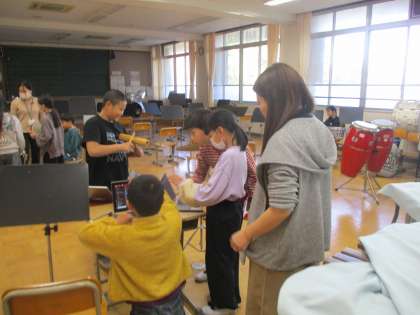 音楽科の学習で、リズムづくりをしています。グループでリズムを考えたり、使う楽器を考えたりして協力して進めています。これから、練習をして各グループごとのリズムづくりがさらに進んでいくのが楽しみです。