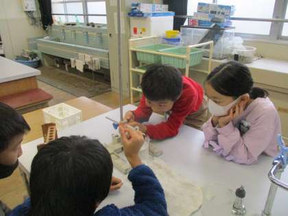 理科の実験で、水を温めたり、冷やしたりすると体積がどう変わるかを学習しました。前回は、空気の体積の実験を行って、変化の大きさを実感しました。今回は、水の体積なので、変化の大きさはあまりなかったのですが、一生懸命に水面を見つめる子どもたちの横顔が素敵でした。