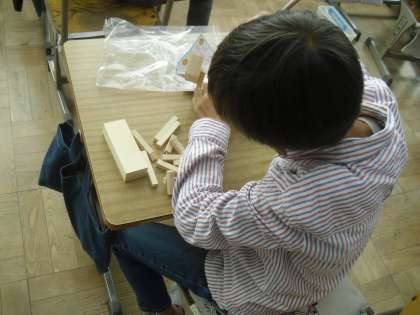 先週の「くぎうちトントン」の学習では、木材にくぎを打って何が思いつくかを考えました。今週もくぎ打ちを進め、それぞれ木や釘の良さを生かした作品になってきました。早くできた子どもから、色塗りをしています。どんな作品になるのか、楽しみです!!