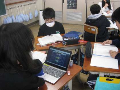 グループの中の1名がタブレットで記録をし、話し合い活動を進めました。