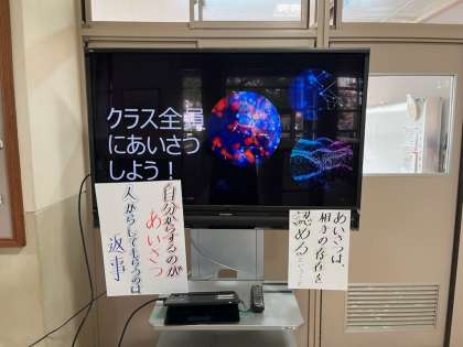 児童会の児童も、あいさつであふれる学校にしようと、いろいろと取組を考えてくれており、毎日あいさつのミッションを周知し、ミッションを達成できるように取り組んでいます。