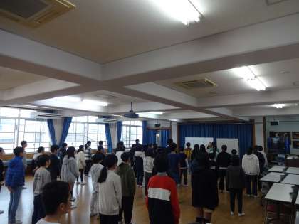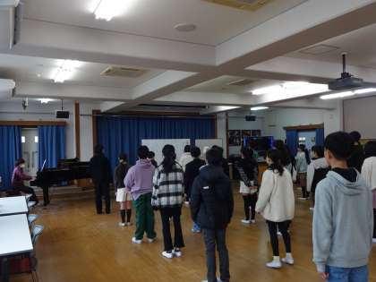 1時間目に校舎を歩いていたら、多目的室からきれいな歌声が聞こえてきました。覗いてみると、6年生が音楽科の授業で、卒業式に歌う歌の練習をしていました。担任2人と音楽専科教員の3人態勢で、小学校生活最後の日に素晴らしい歌声を披露できるよう、授業を進めていました。まだまだ粗削りですが、素敵な歌声を聴き、私自身が6年生を担任していた時のことを思い出しました。