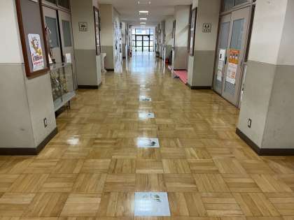 先週末の3連休に、年度末に向けてさらに気持ちよく過ごしていけるよう、業者の方に1階廊下、多目的室、体育館のワックスがけをしていただきました。