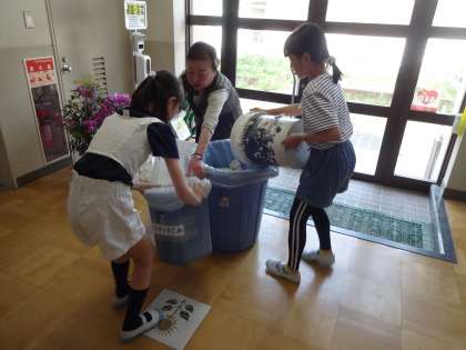今年度より、コロナ禍前のように、管理用務員さんにお世話になり、掃除のごみを一か所で集めるように戻しました。
