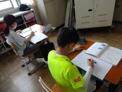 4時間目の5年1組では、算数科「整数と小数」の学習をしていました。2組と同様に、問題をたくさん解いて、学習したことを定着させていました。