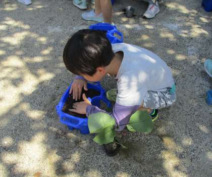 一人一人の鉢に自分の選んだ野菜を丁寧に植えました。