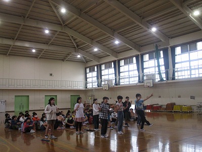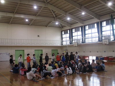 今日は、1年生を迎える会に向けて初めて体育館で練習を行いました。